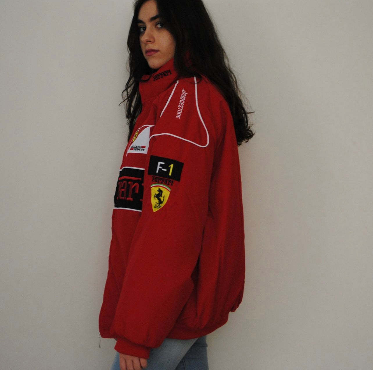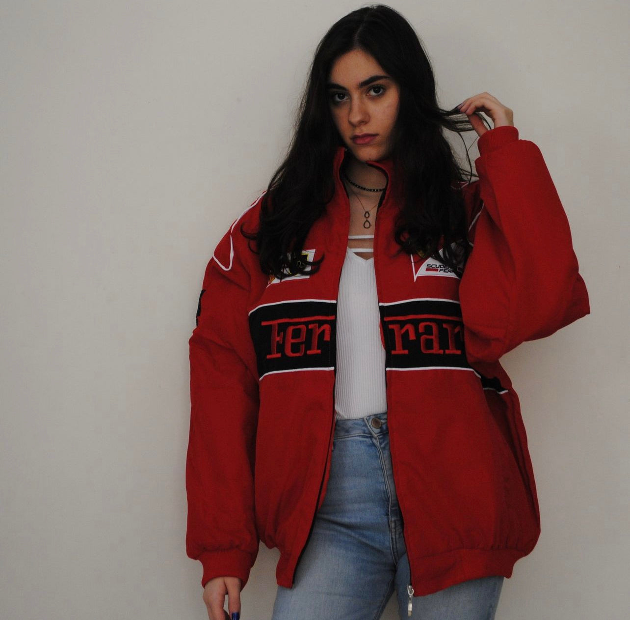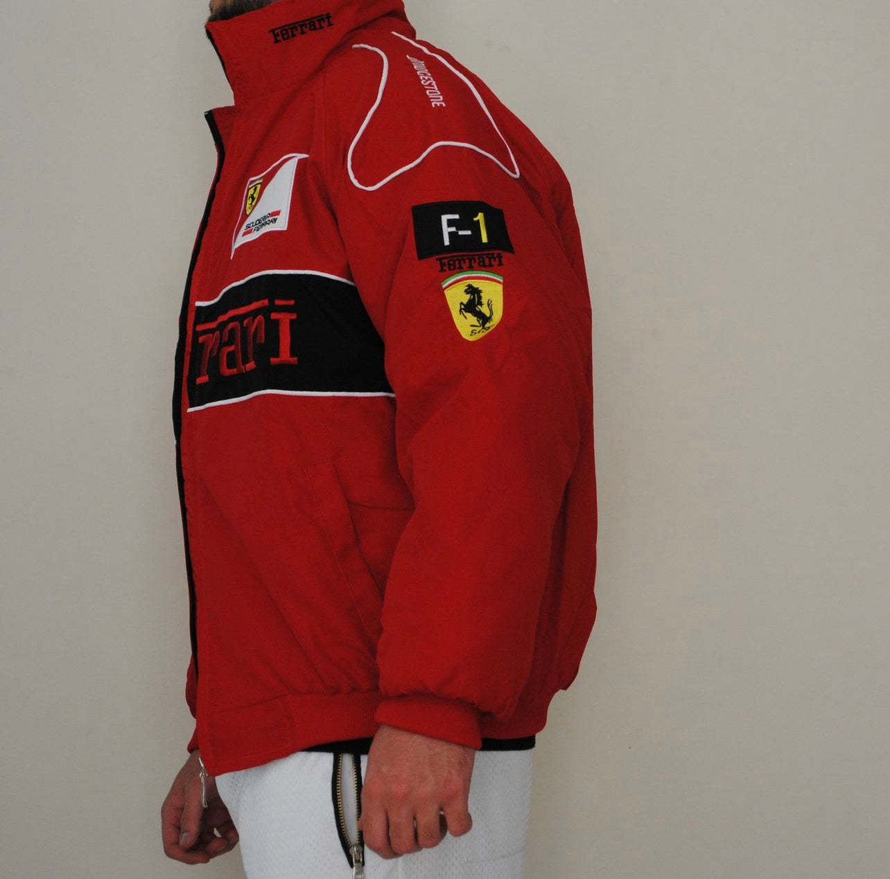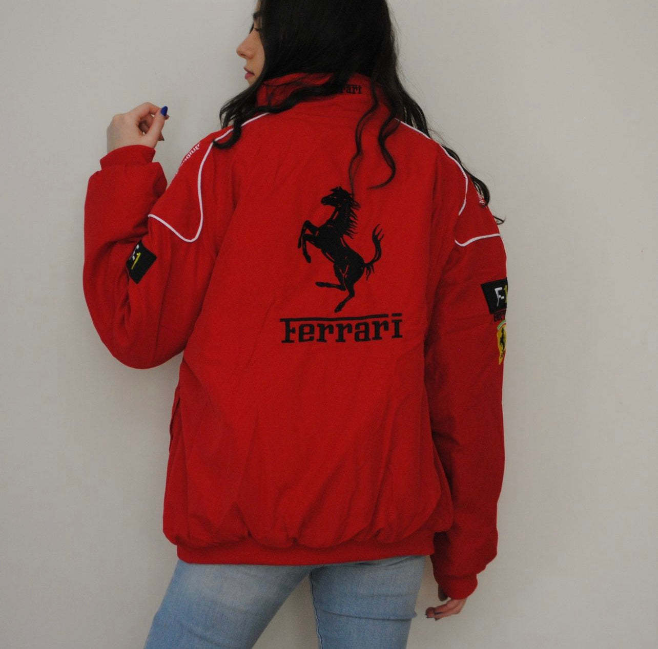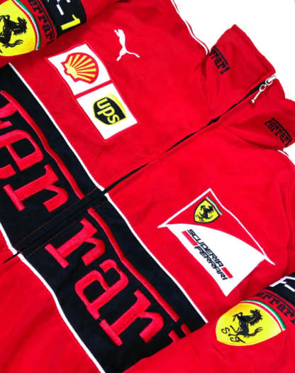 Embark on a thrilling journey of speed and luxury with our Ferrari Vintage Jacket. A symbol of automotive excellence, this iconic piece pays homage to the prestigious Ferrari brand and its legendary racing heritage. Impeccably crafted with premium materials, the jacket exudes a timeless appeal that transcends the decades. The iconic Ferrari emblem proudly adorns the chest, reflecting a legacy of speed, innovation, and victory. Step into the world of motorsport legends and embody the passion and prestige of Ferrari with this exclusive vintage jacket. Whether you're a racing enthusiast or a fashion aficionado, this jacket is a captivating statement piece that captures the allure of speed and elegance in every detail.
